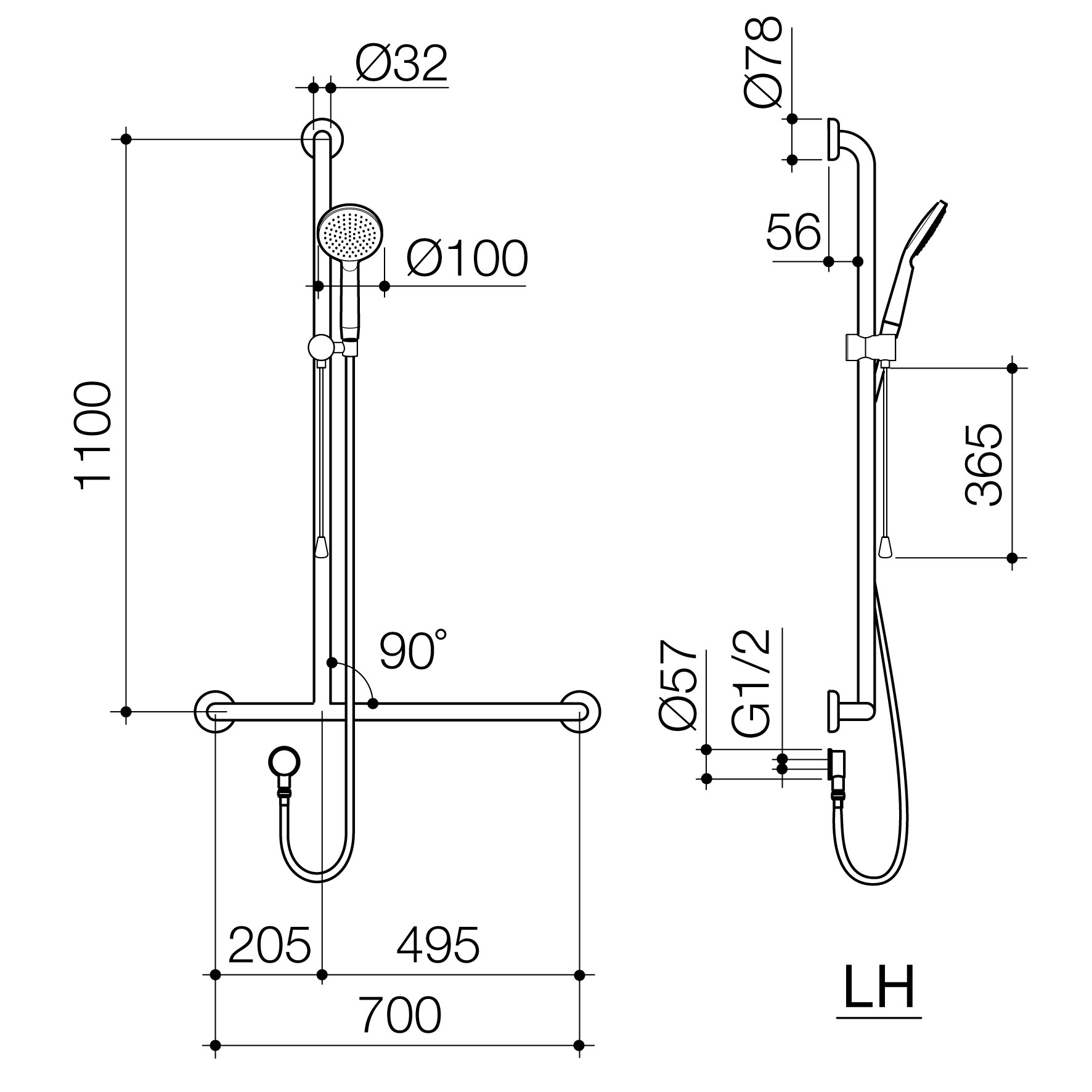 Care Support Accessible Shower Set with Inverted T Rail - LH - Chrome