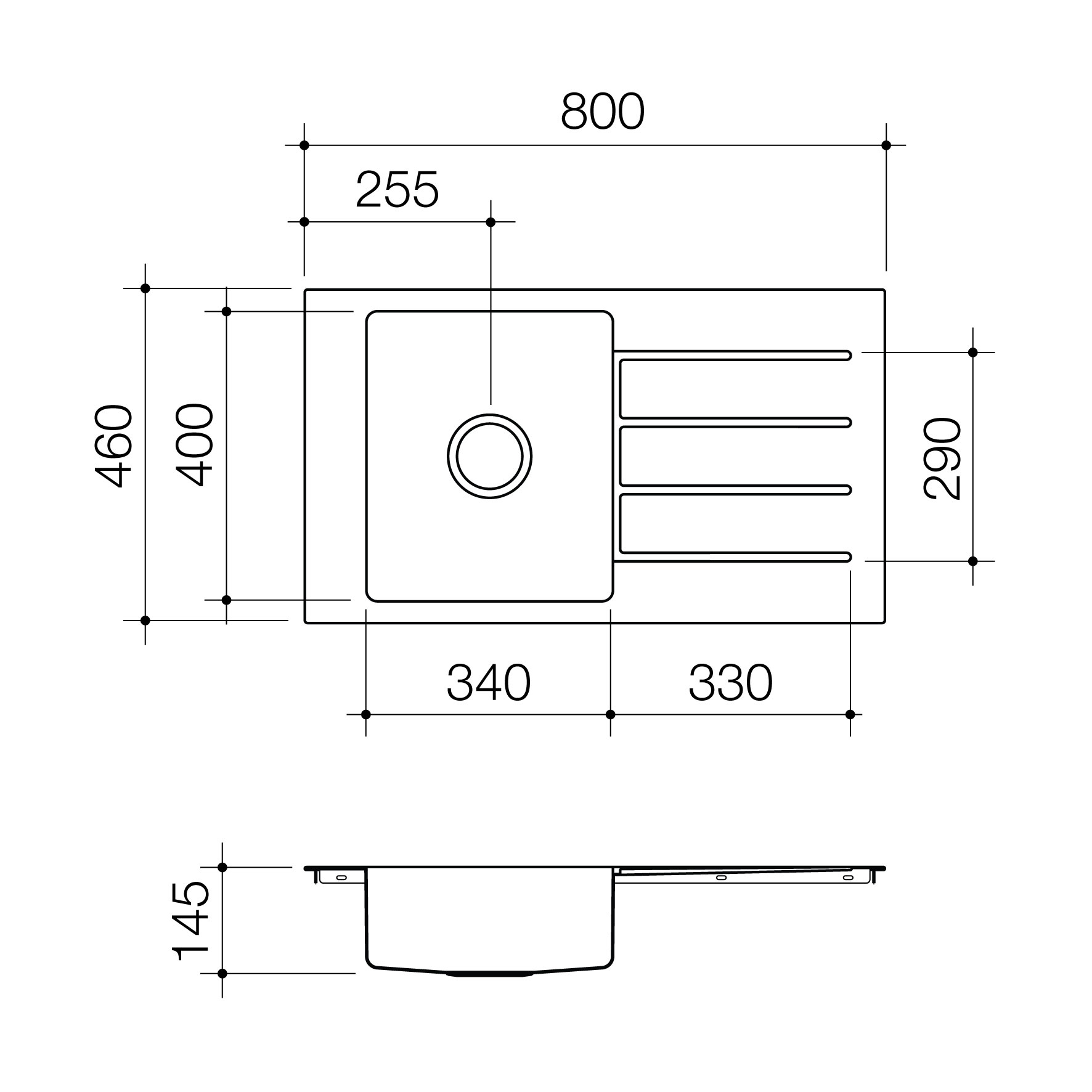 Specifically designed draining board with deep etched grooves to allow water to drain easily