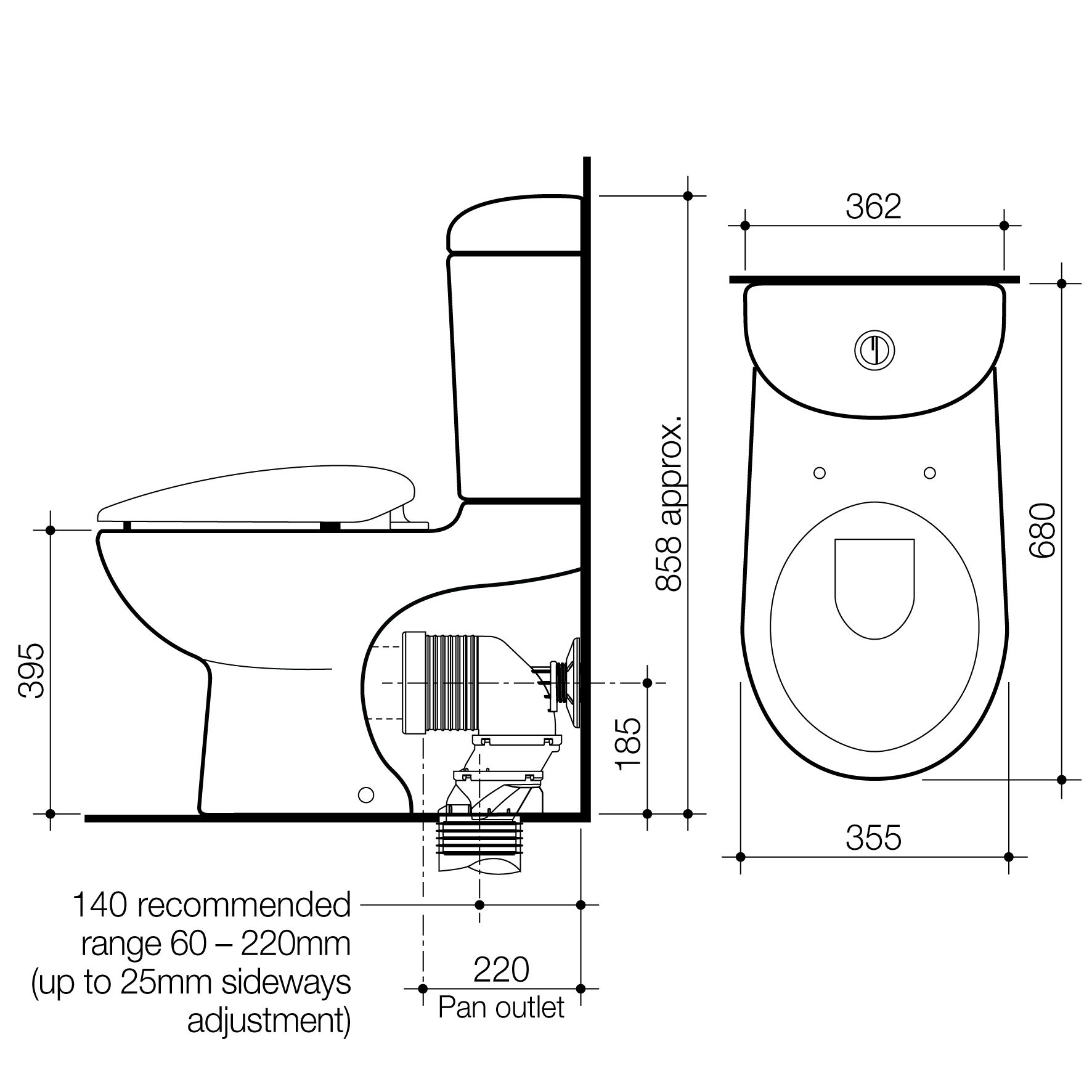 • Wall faced, close coupled style