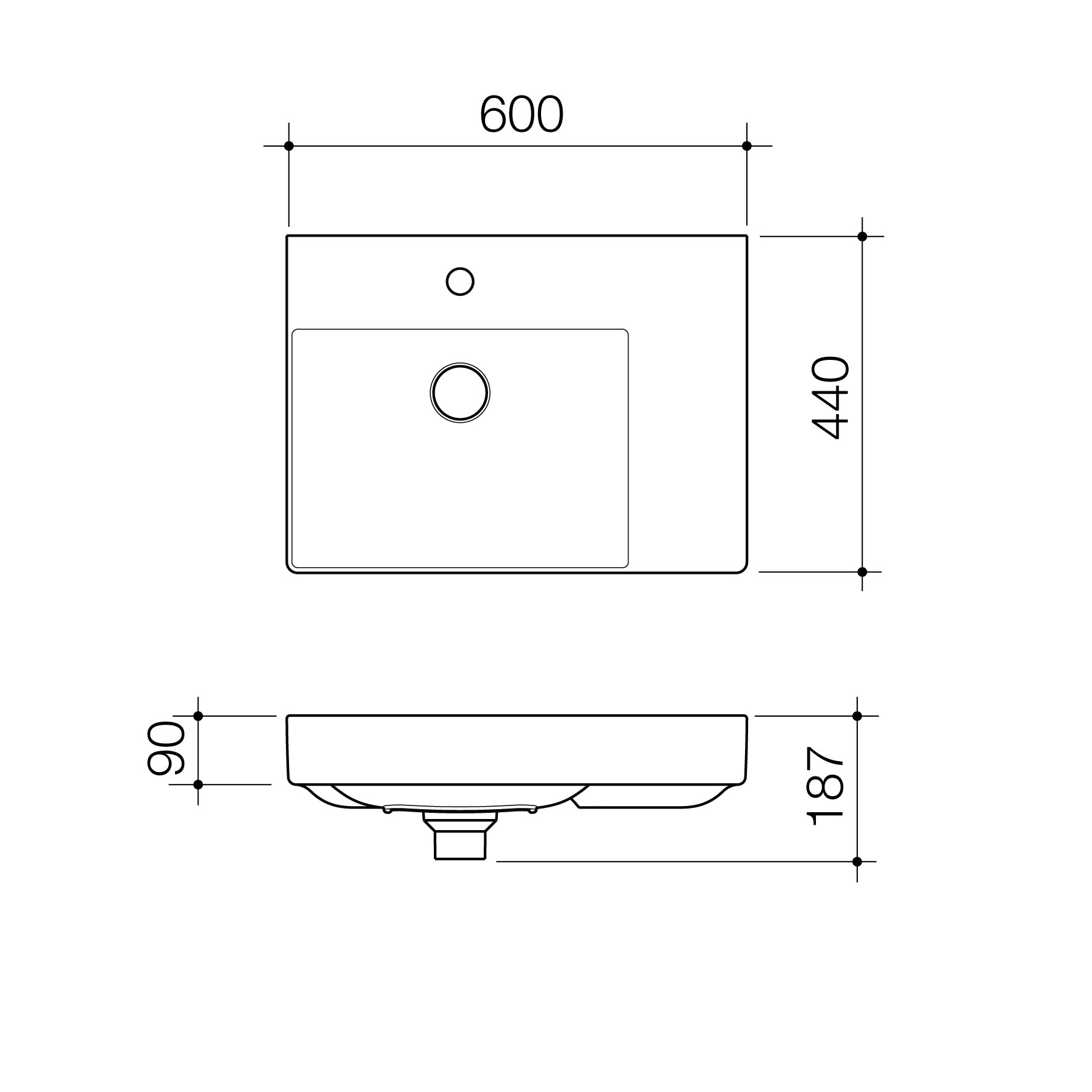 Urbane II Right Hand Shelf Wall Basin (1 Tap Hole)